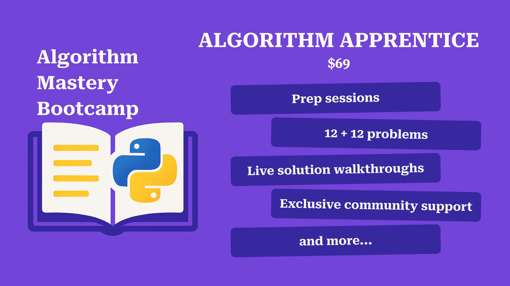 If you’ve been wanting to finally feel confident tackling algorithmic problems, sharpen your Python skills, and learn to think like a real programmer & problem-solver, this is your chance.